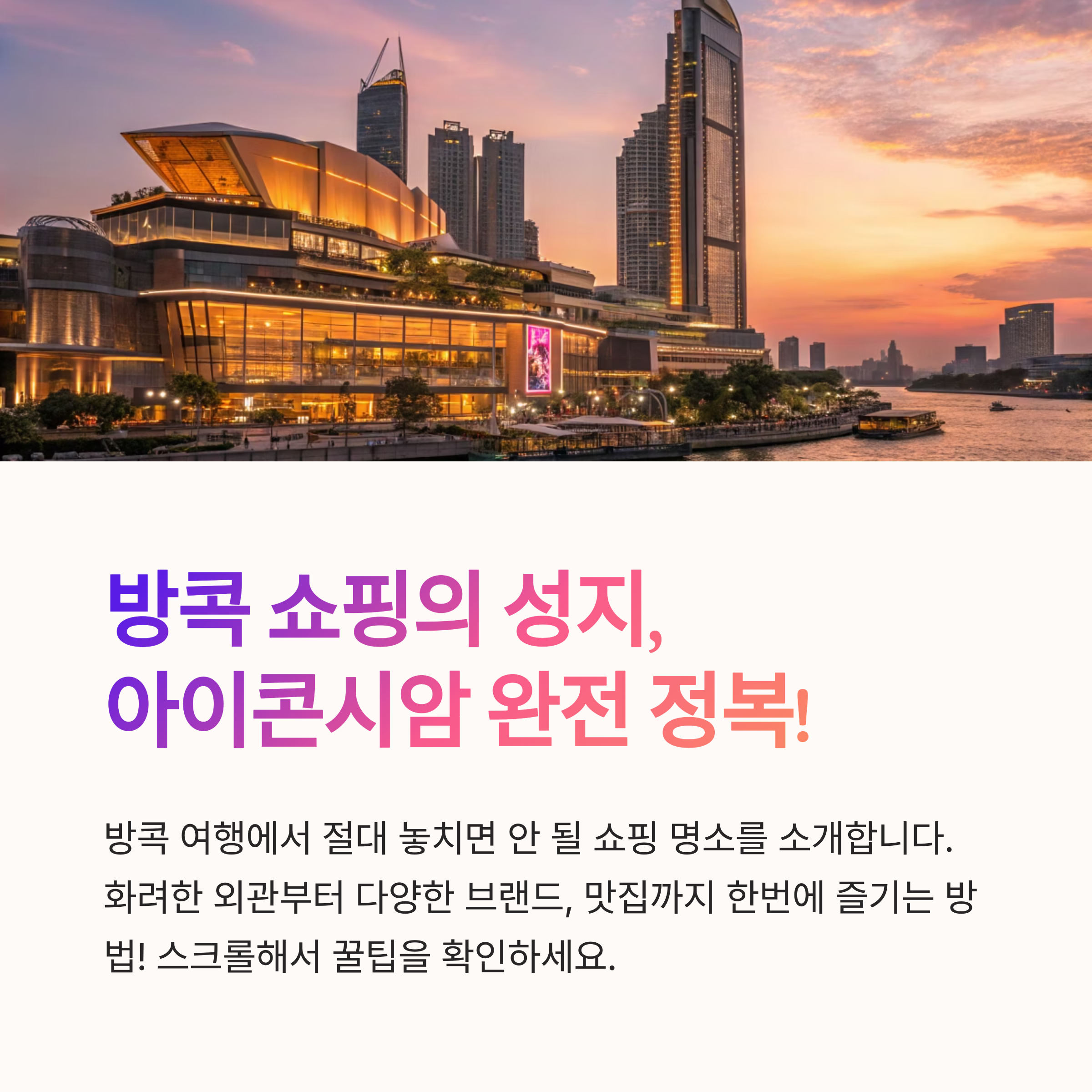 방콕 여행을 계획 중이라면 절대 빼놓을 수 없는 곳이 바로 **아이콘시암(ICONSIAM)**입니다.