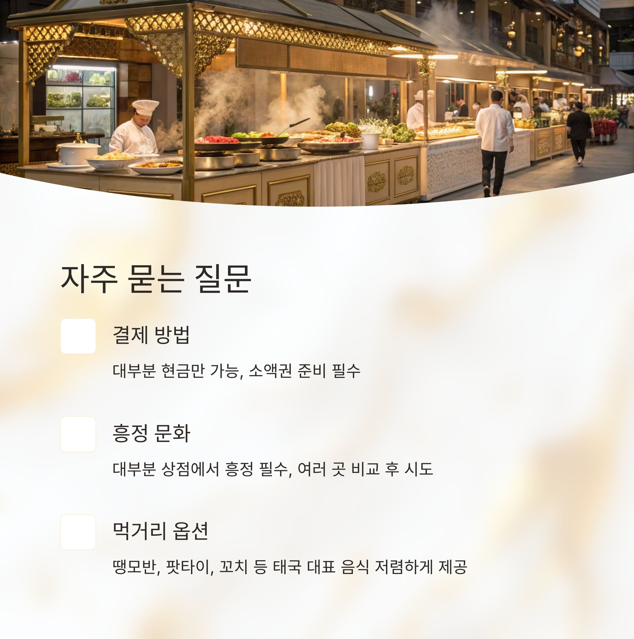 짜뚜짝 시장을 최고의 쇼핑 코스로 만들기 위한 팁입니다.