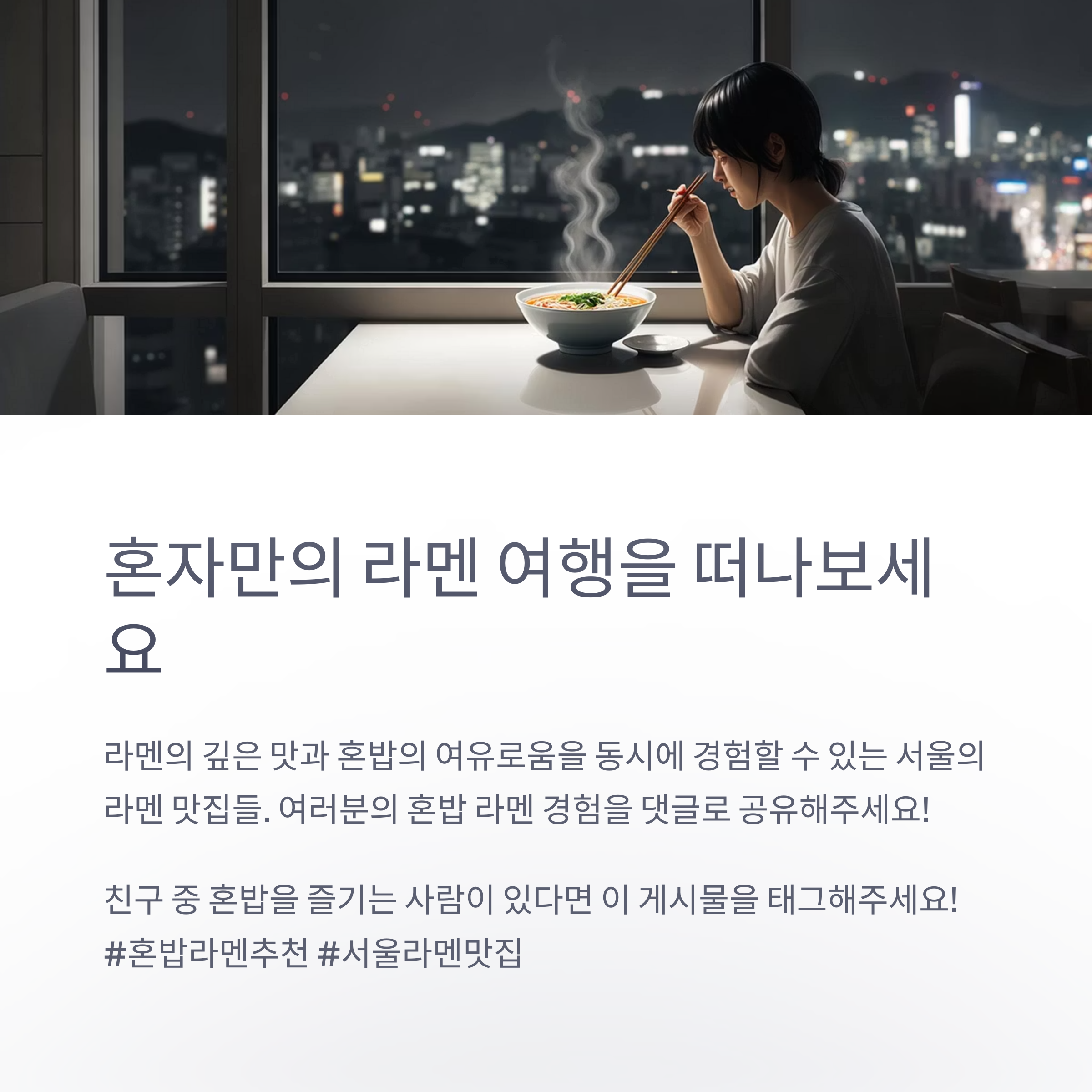 라멘의 깊은 맛과 혼밥의 여유로움을 동시에 경험할 수 있습니다.