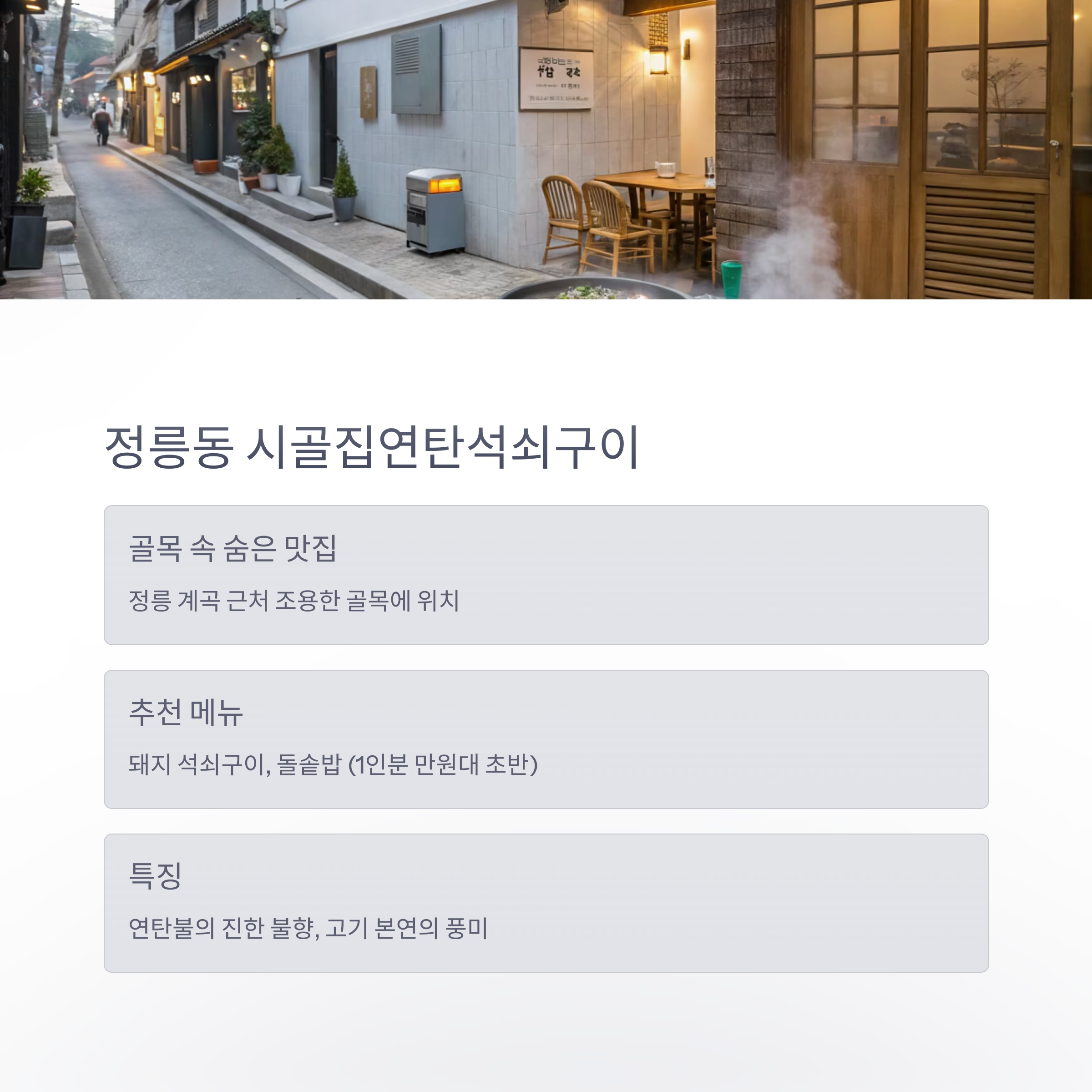 서울 속 골목길에서 불향 가득한 고기와 넉넉한 한상을 부담 없이 즐기고 싶다면