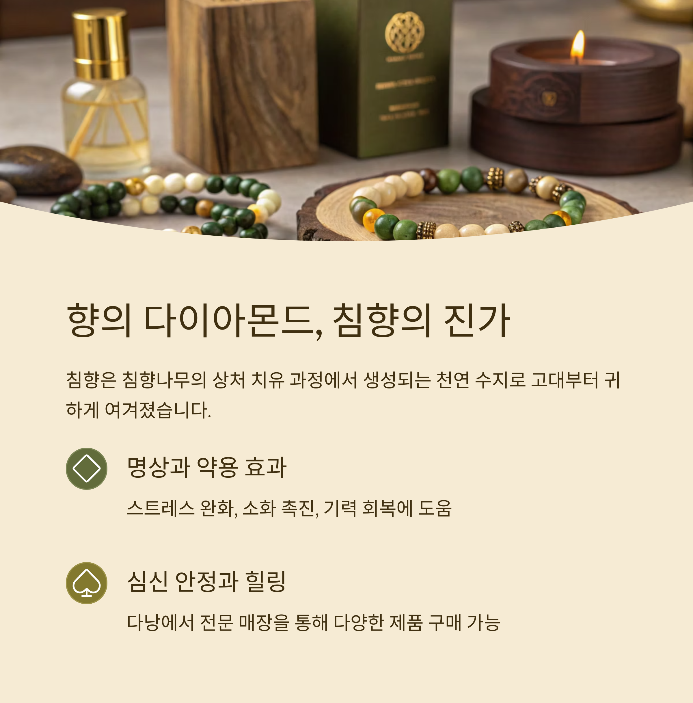 | 침향 팔찌/목걸이 | 심신 안정, 향 효과 |