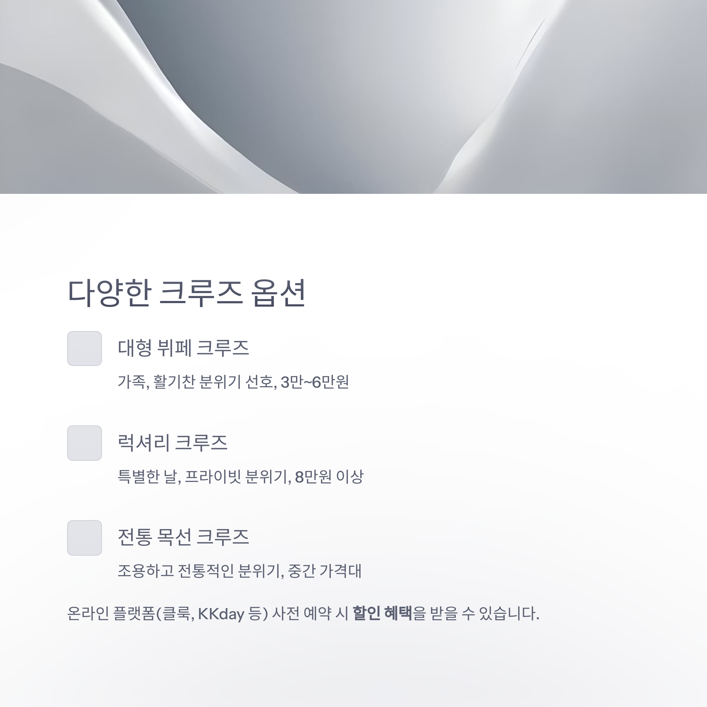 다양한 크루즈 종류와 가격대