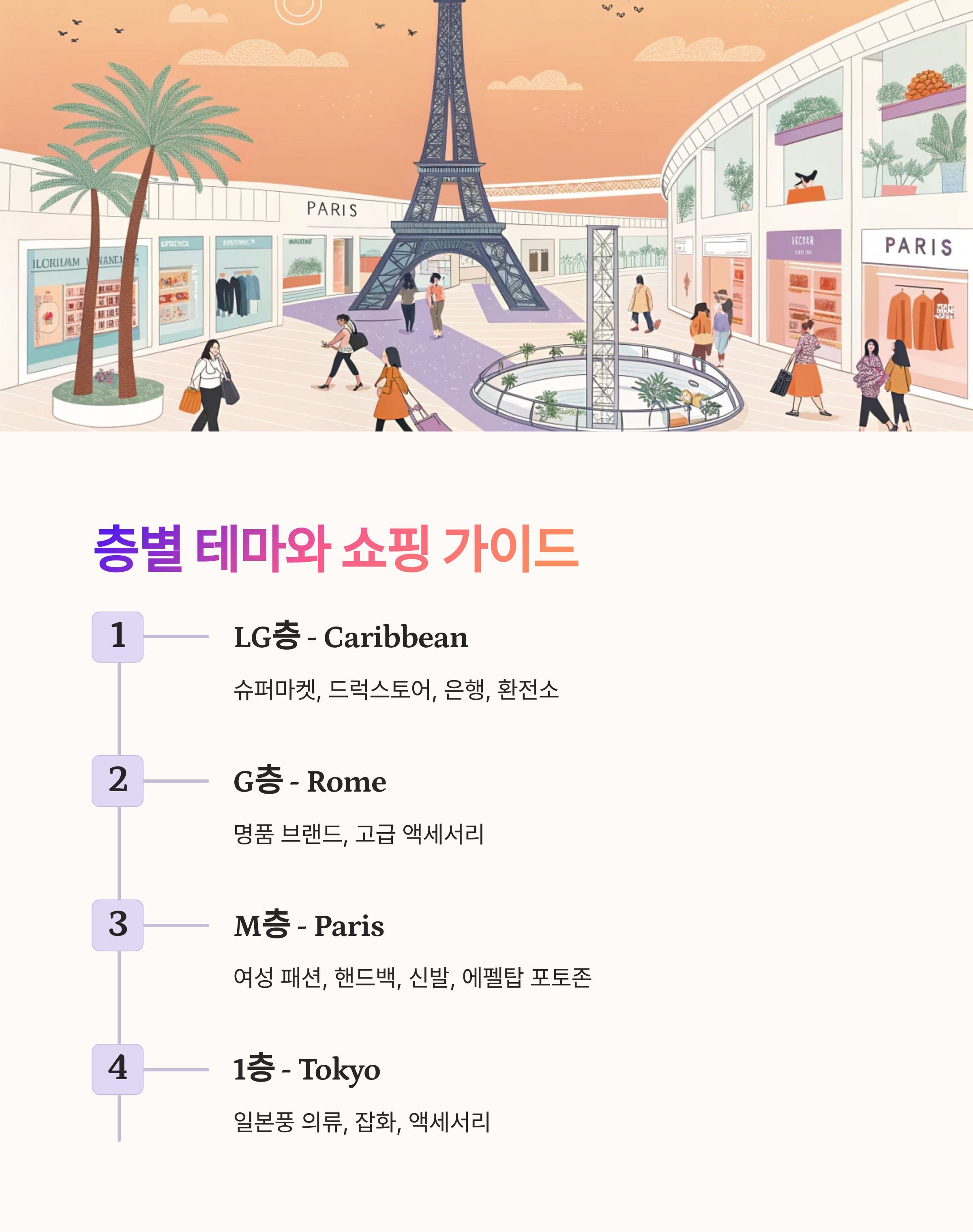효율적인 쇼핑을 위해 층별 테마와 특징을 미리 알아두세요.