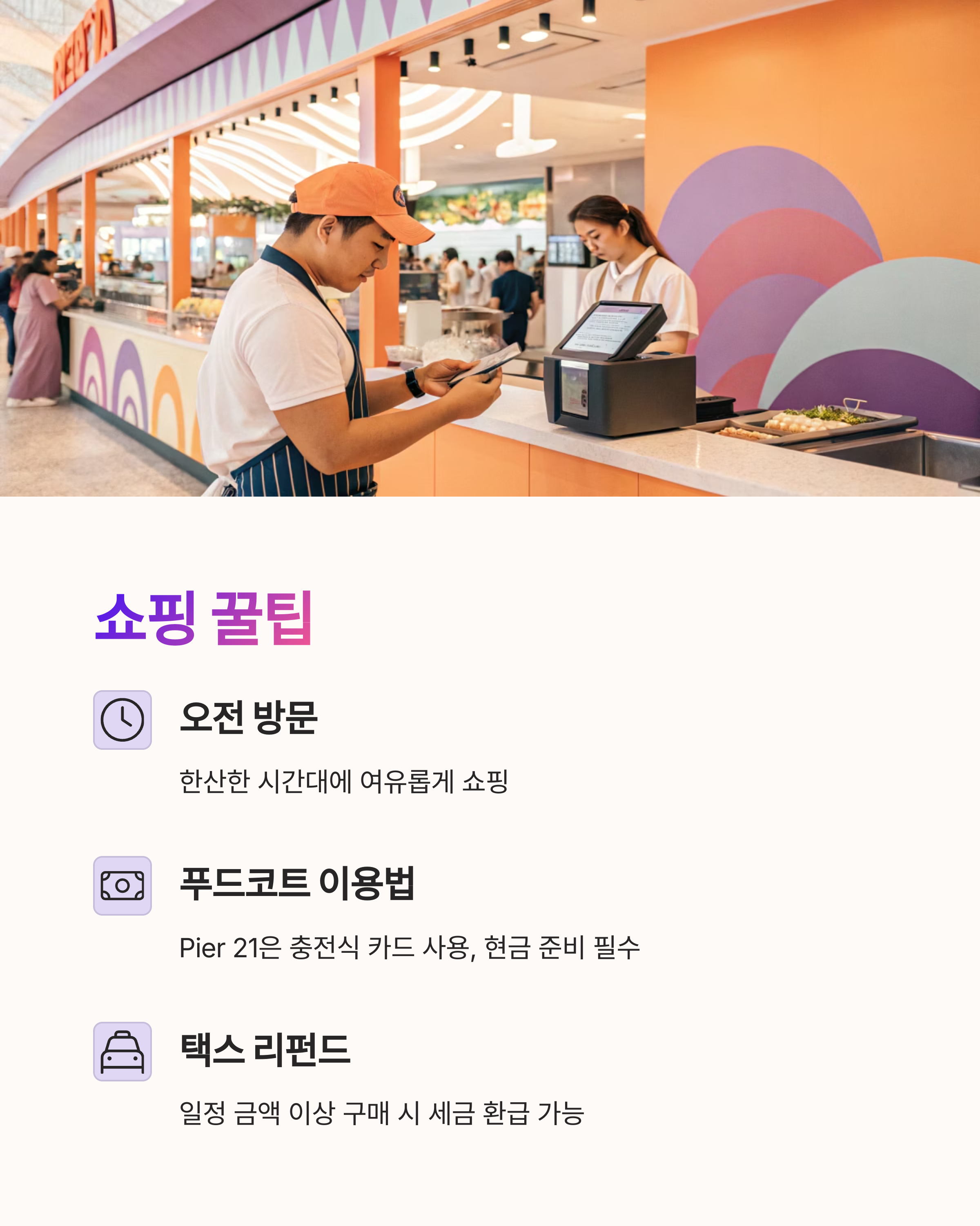 - Pier 21은 현금 결제 가능성이 높으니 현금 준비