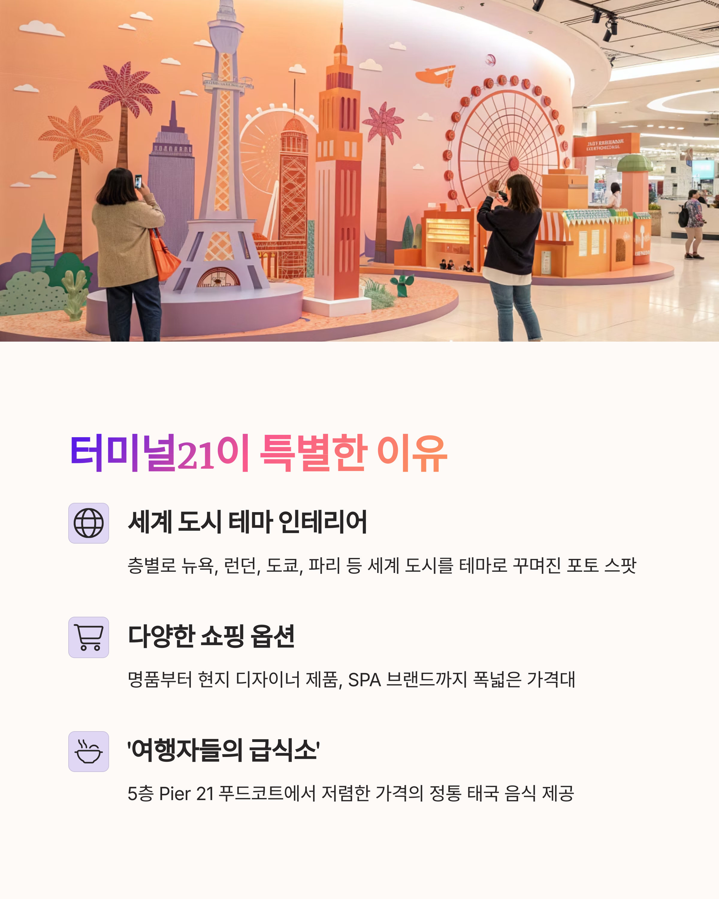 터미널21은 단순한 쇼핑몰을 넘어 세계 도시 여행을 체험하며